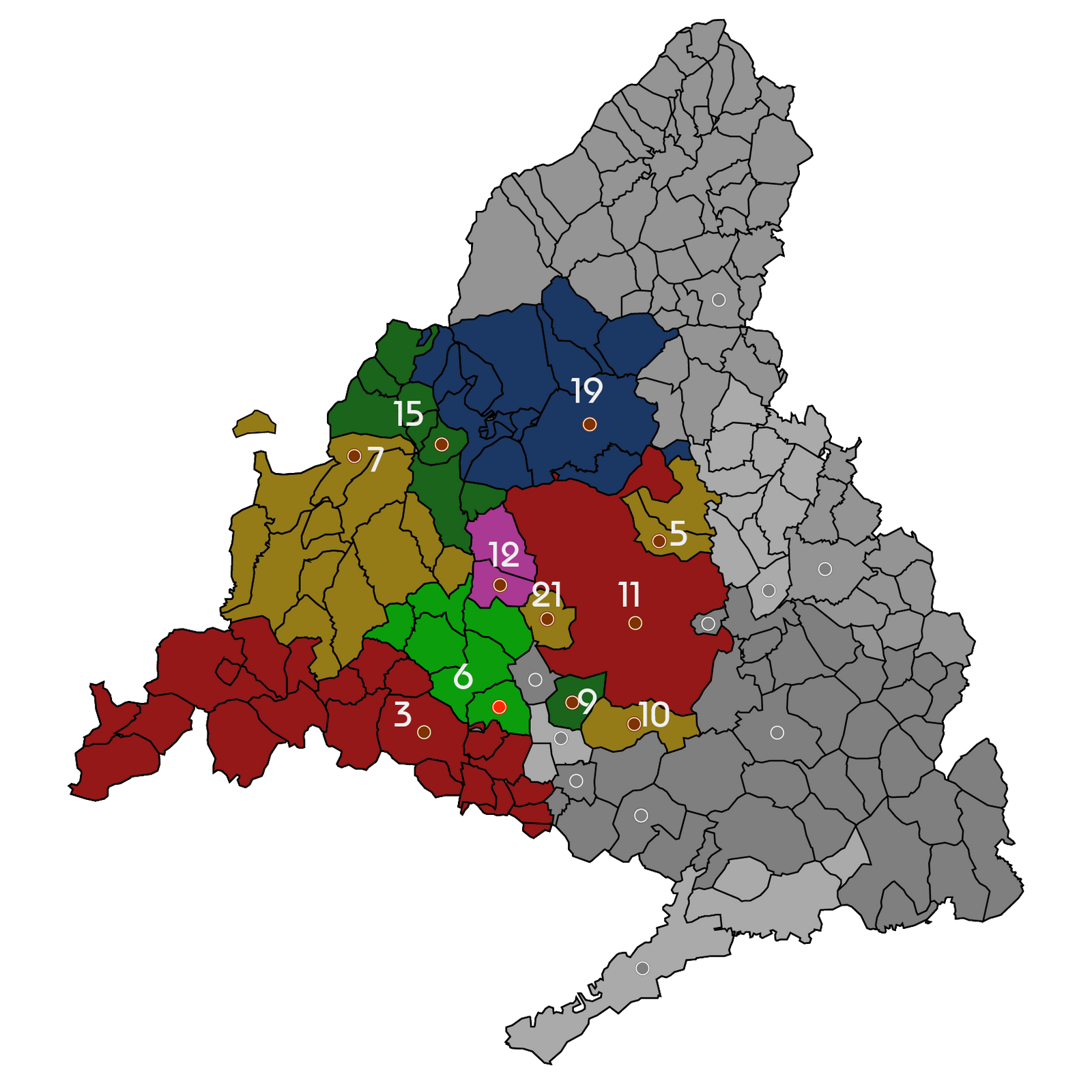 Direcciones y teléfonosTodos se encuentran en la Avda. de los Claveles 12 - 28220 - Majadahonda, excepto el 6 y 7 que están en Joaquín Turina, s/n - 28220 - Majadahonda.Esta fomado por los municipios de Majadahonda y